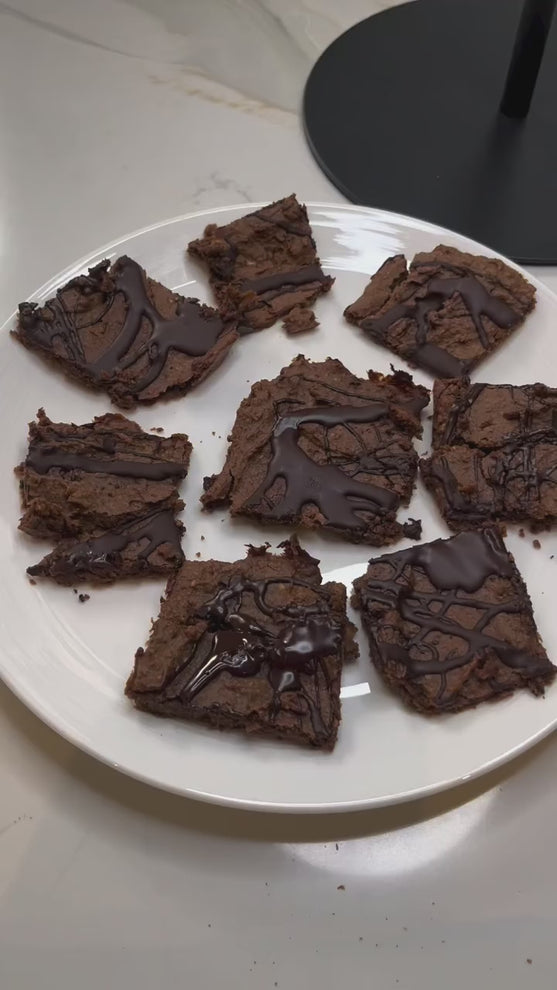 Pour the batter into an 8x8 tin and bake at 160 degrees for 20 mins.